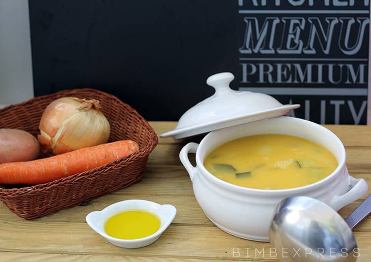 You can cook Sopa de cenoura com alho francês using 8 ingredients and 4 steps. Here is how you cook that.
