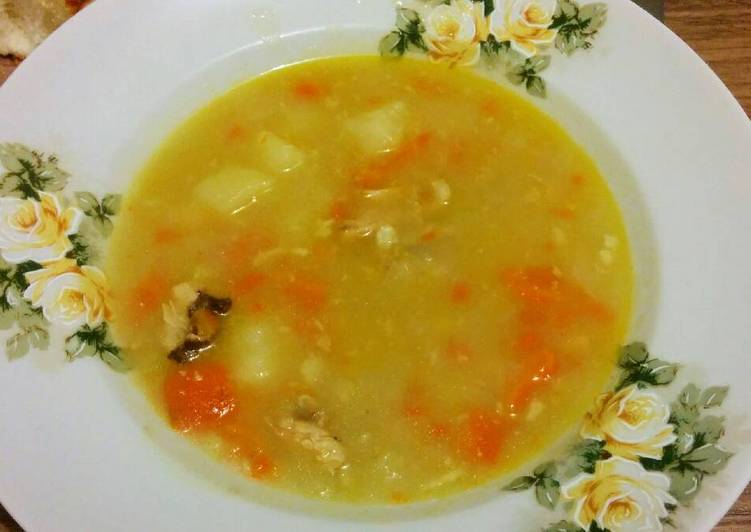- Tire o frango da panela e frite um pouco. Depois, jogue a sopa de batatas e cenoura na panela. Acrescente mais um pouco de água e deixe ferver..