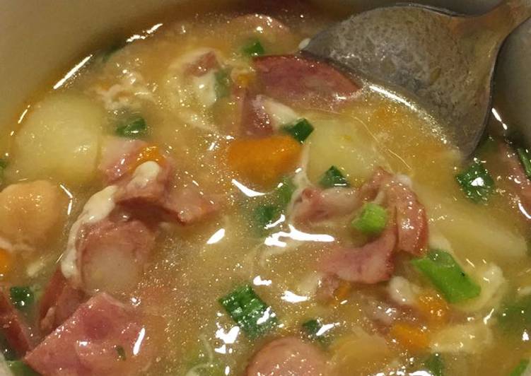 Sopa de legumes com calabresa.