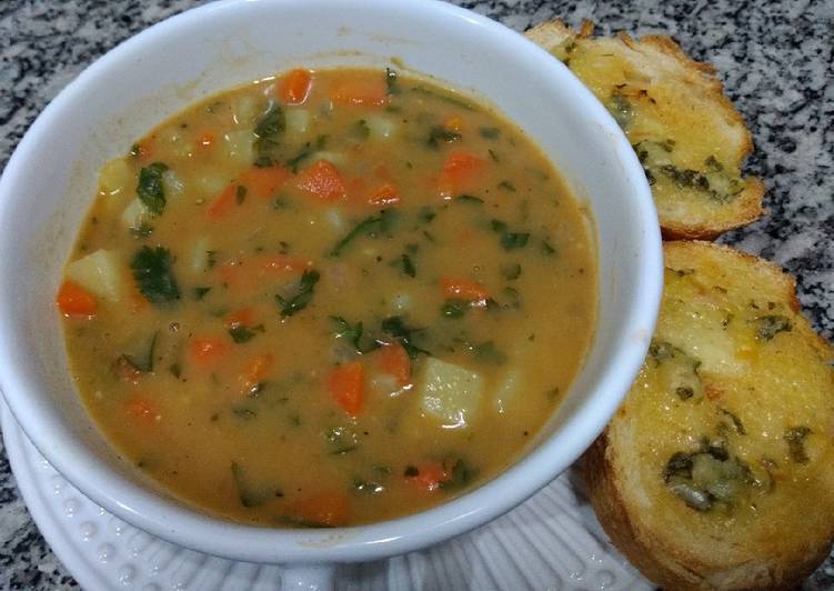- Adicionar água o quanto baste para cobrir tudo. Deixar cozinhando em panela semi tampada até a batata ficar cozida no ponto. Ao desligar o fogo adicionar a salsinha o sal e a pimenta do reino a gosto! Acompanha torrada de pão italiano com azeite e gorgonzola..