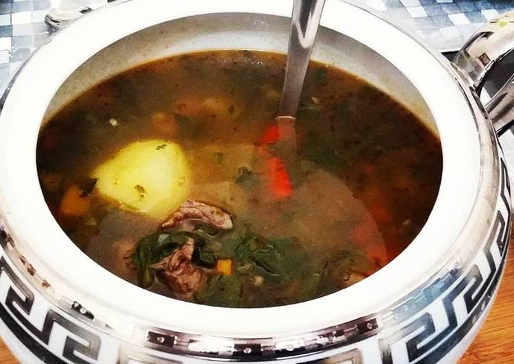 - Adicionar os legumes, água, os temperos tampar e deixar cozinhar até as batatas e cenouras ficarem quase al dente então adicionar o espinafre..