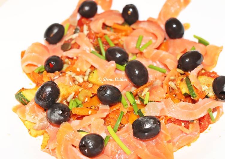 Salmão fumado com legumes salteados step by step